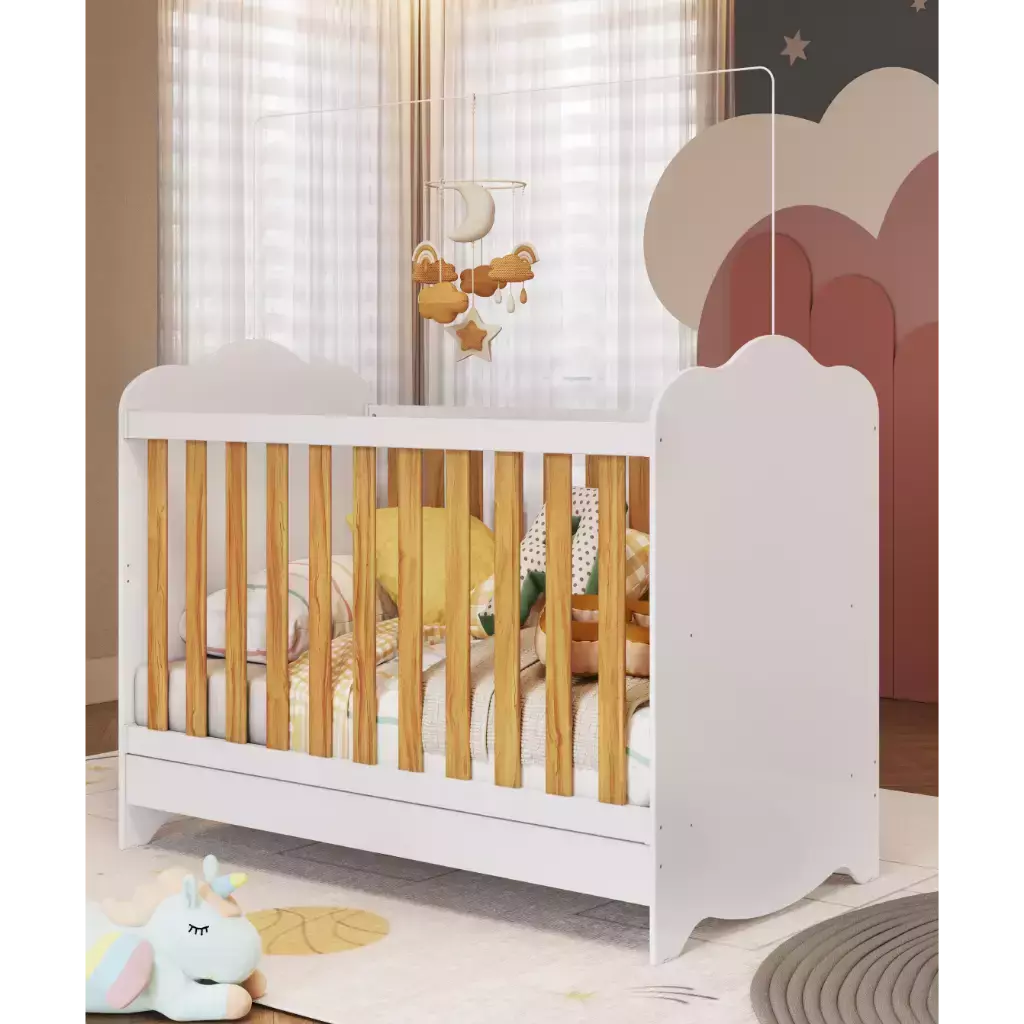 O Berço Clara é um produto padrão americano, fabricado 100% em MDF e possui pintura atóxica. Seu estrado possui altura regulável e é fabricado em MDF e madeira/laminado de madeira. As grades são fabricadas em chapas de 25 e 12 mm e as cabeceiras são em chapa de 12 mm. Possui bordas arredondadas e laqueadas, proporcionando maior segurança e uma sensação agradável ao toque.