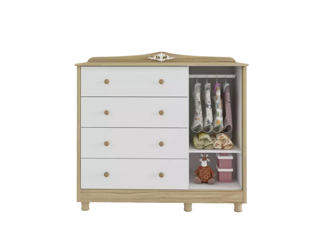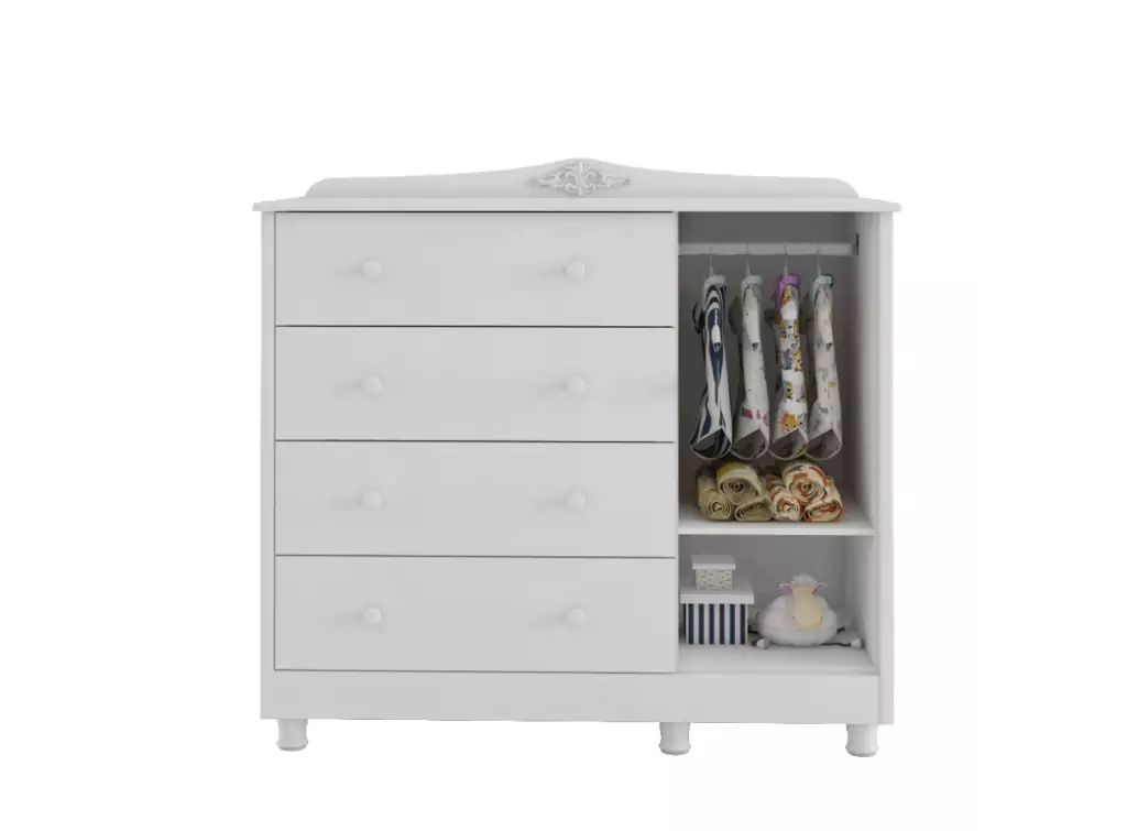 Porta c/ PETG cristal,Puxadores em ABS,Corrediças telescópicas,Cabideiro metálico,100% MDF ,Tampo c/ bordas laqueadas