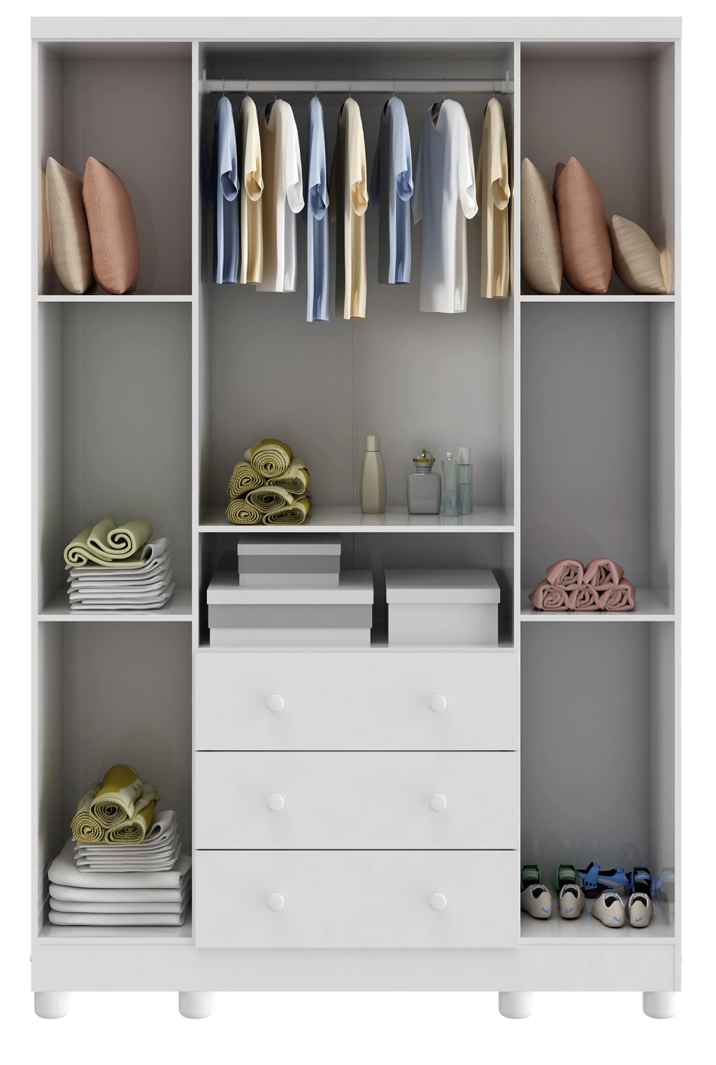 Portas c/ PETG cristal ; Puxadores em ABS ;Cabideiro metálico; Corrediças metálicas ;100% MDF ; Pés em ABS inclusos;