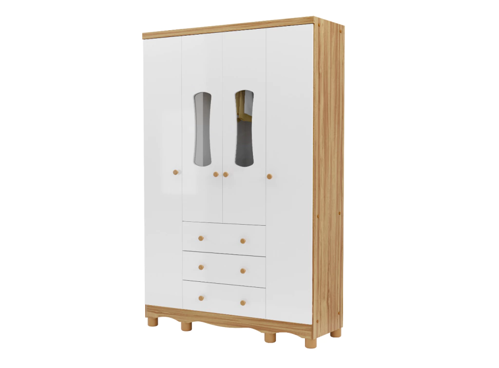 O Armário Luna 3 Portas é um produto 100% MDF e possui pintura atóxica. Sua estrutura é fabricada em chapa de 12 mm e seus pés são injetados em plástico de alta resistência. Os puxadores são também em plástico. Os cabideiros são metálicos e suas gavetas possuem corrediças apoiadas metálicas. Acompanha dois modelos de rodapés que podem ser definidos no momento da montagem e suas portas possuem detalhe com PETG cristal.