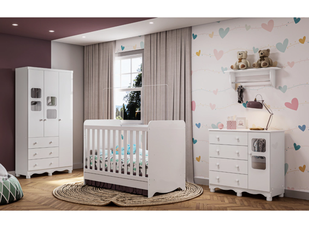 Fabricado em MDF; Base regulável da altura do colchão;Varão para mosquiteiro; vira mini cama ;