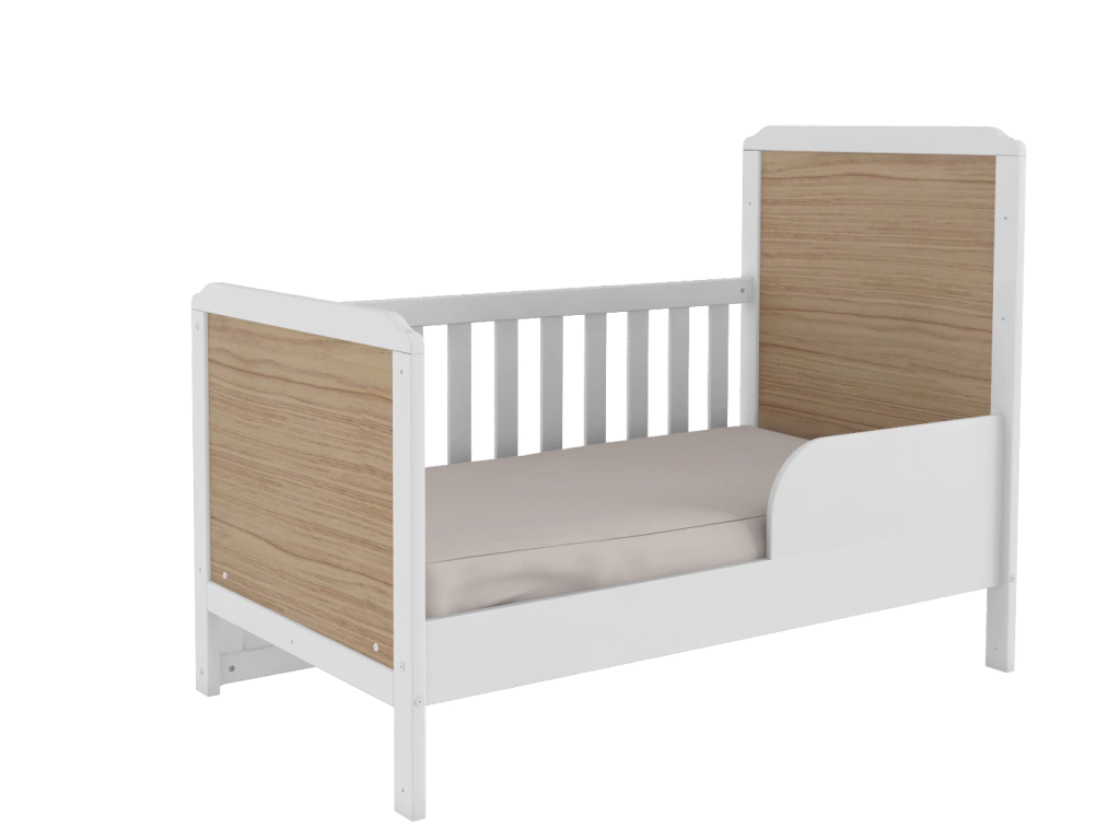 04 rodízios, sendo 02 com travas , Berço 2 em 1: se transforma em minicama