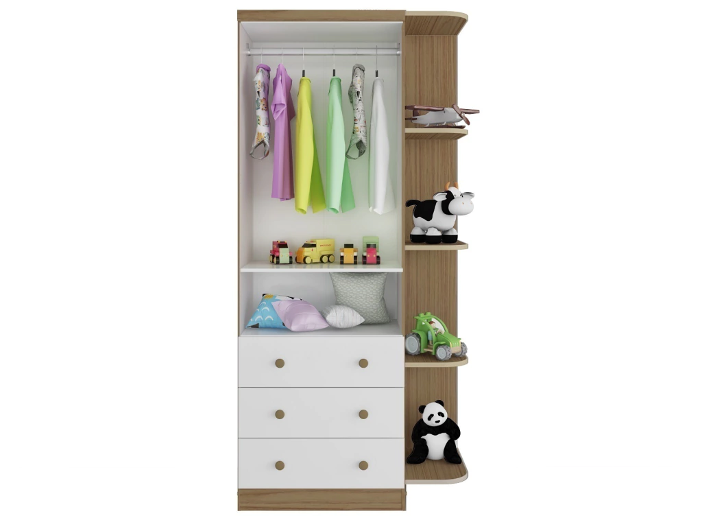 100% MDF , Kit antitombamento incluso , Prateleiras externas podem ser montadas em ambos os lados