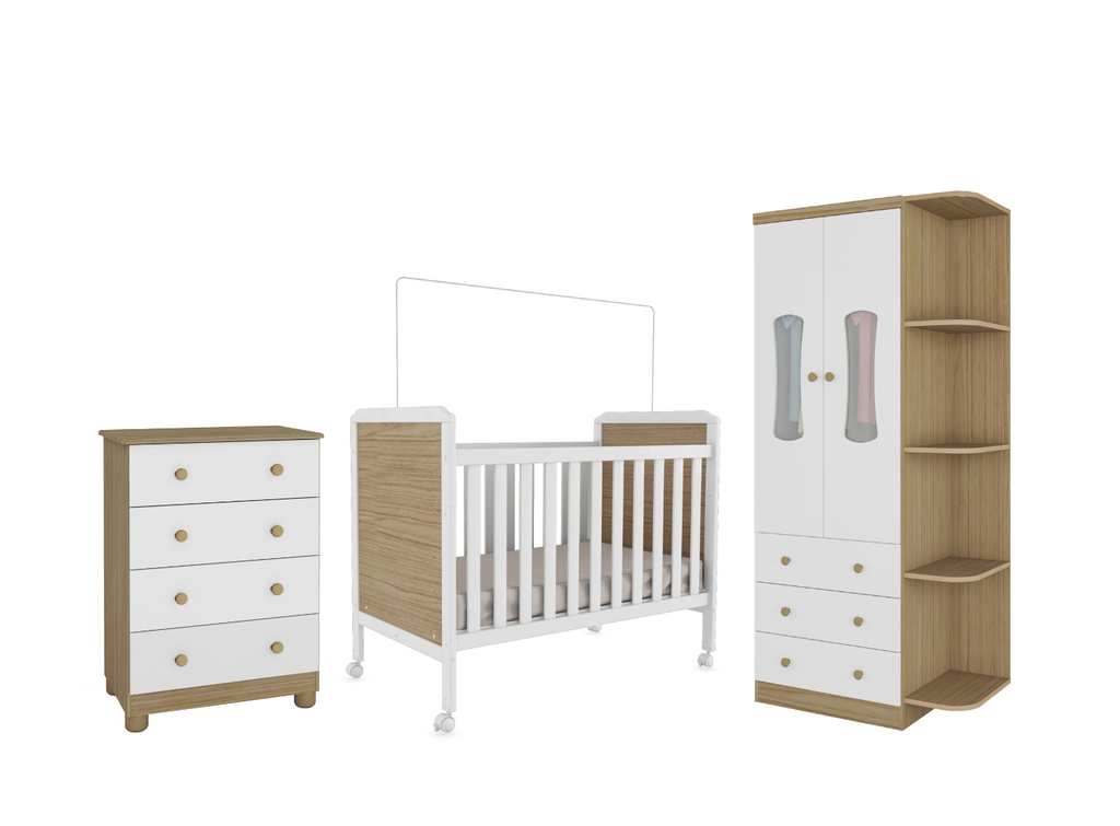 Berço padrão americano , 100% MDF , Bordas laqueadas , Base do colchão c/ 3 opções de altura , Varal para mosquiteiro incluso