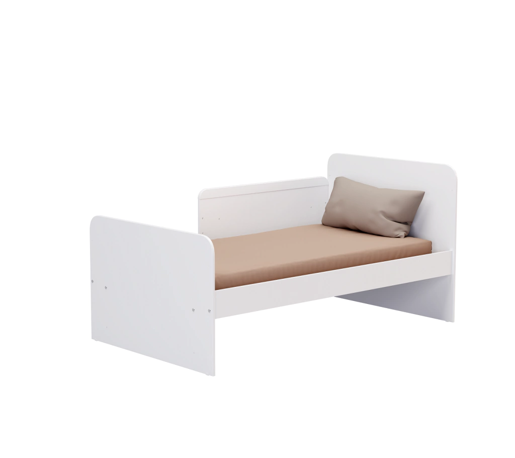 Fabricado em MDF; Base regulável da altura do colchão;Varão para mosquiteiro; vira mini cama ;