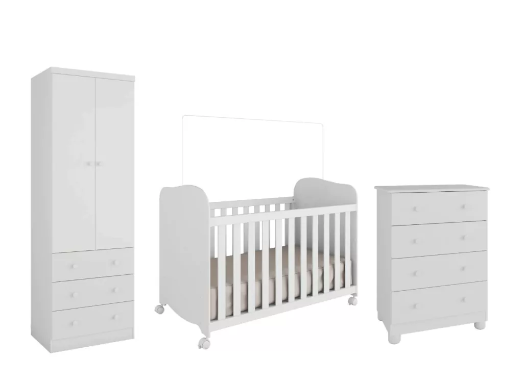 01 Berço Uli padrão americano 100% MDF Bordas laqueadas ;Base do colchão c/ 3 opções de altura Varal para mosquiteiro incluso 04 rodízios, sendo 02 com travas