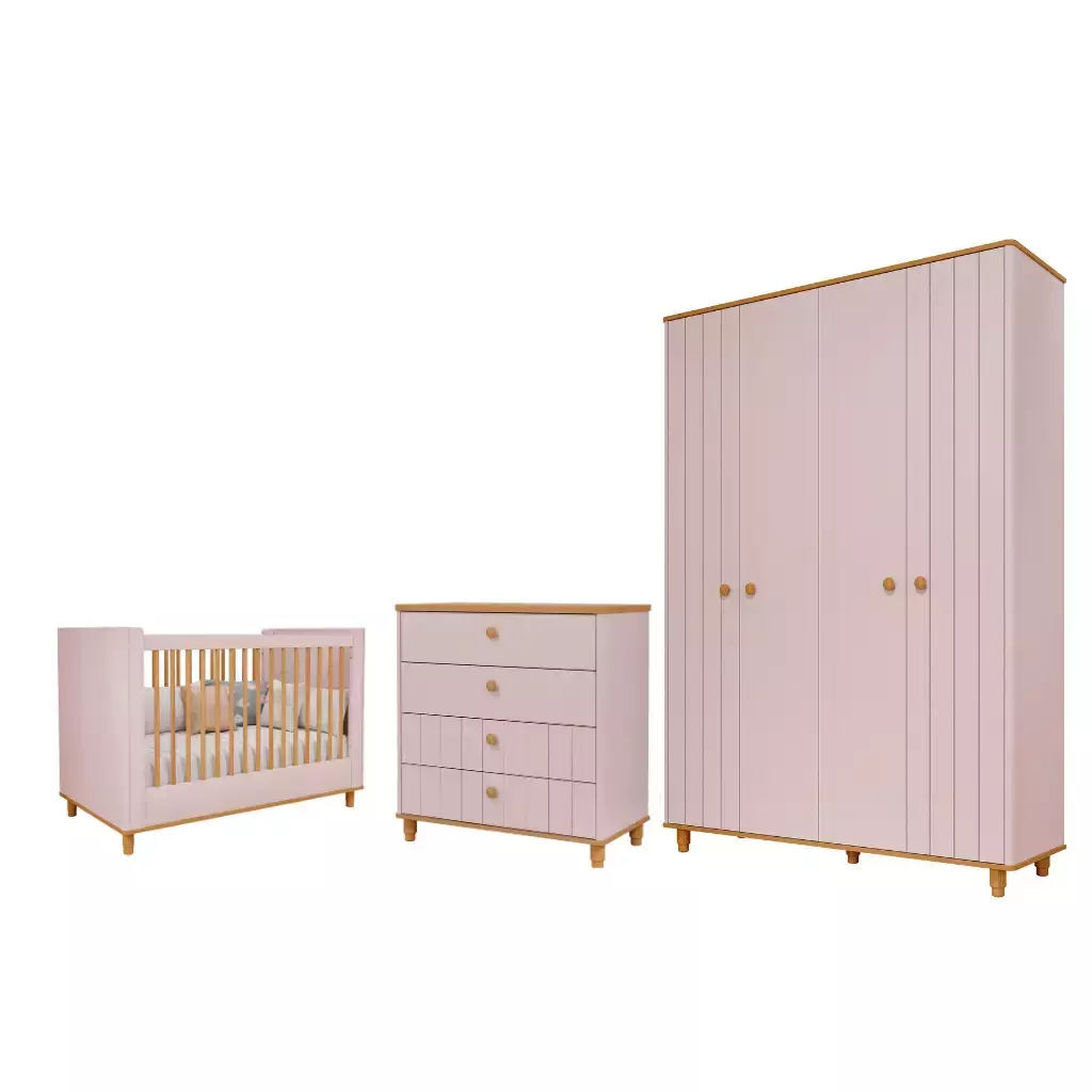 Cômoda Cupcake Permobili 100% MDF Com cantos arredondados, Puxadores torneados em madeira, Pés torneados em madeira, Gavetas com corrediças telescópicas,Detalhe em baixo relevo com pintura laca, MAIS SEGURANÇA: Possui kit Anti tombamento: Evita que a cômoda caia para frente, Acabamento em pintura UV.