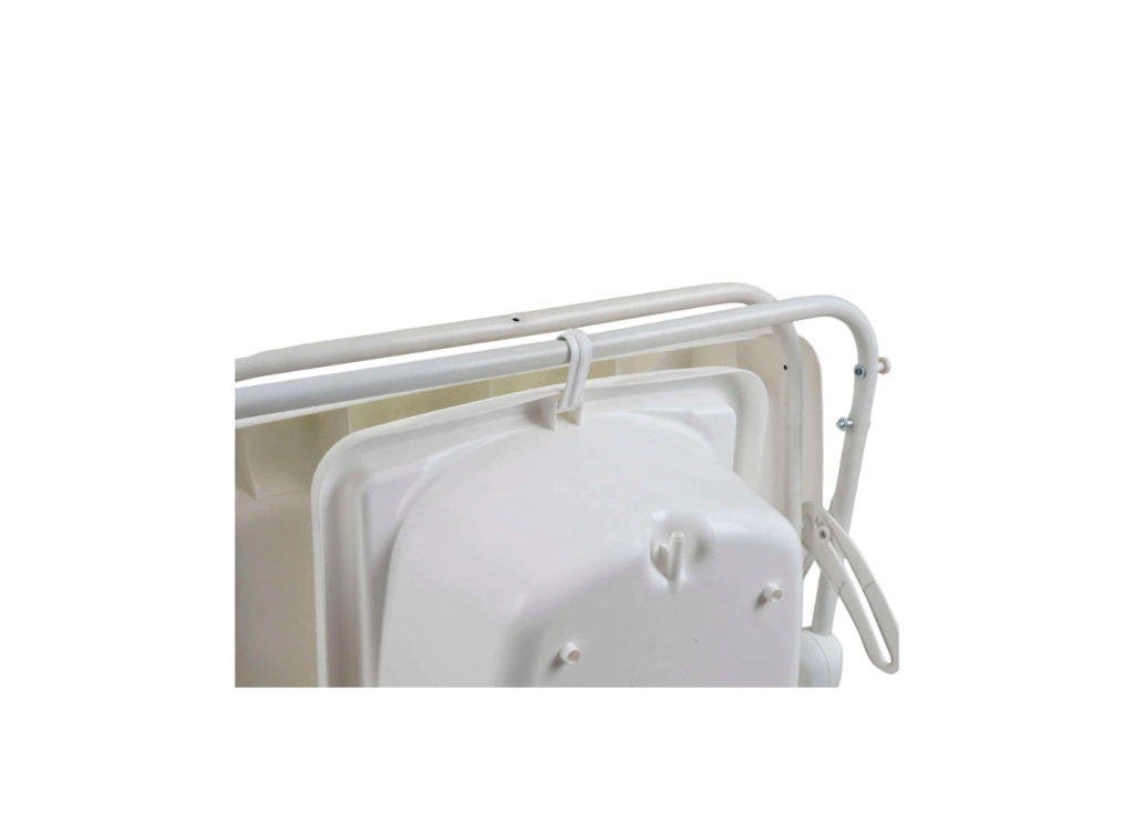 Porta-objetos removível com suporte para toalha.Gancho para guardar a cuba da banheira junto ao suporte.