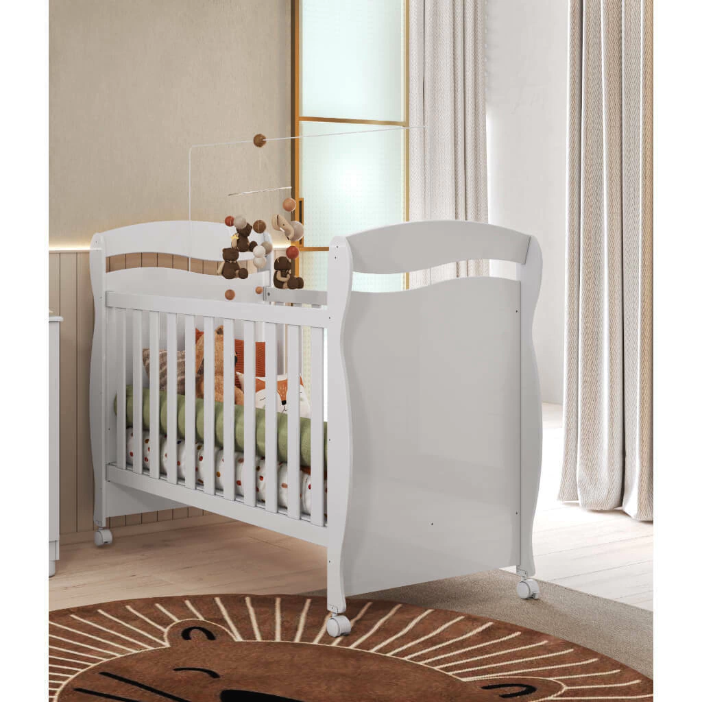 O Berço Júnior 2020 é um produto padrão americano, fabricado 100% em MDF e possui pintura atóxica. Seu estrado possui altura regulável e é fabricado em MDF e madeira/laminado de madeira. As grades são em MDF e as cabeceiras são em chapa de 15 mm. Possui bordas arredondadas e laqueadas, proporcionando maior segurança e uma sensação agradável ao toque.Acompanha suporte mosquiteiro;