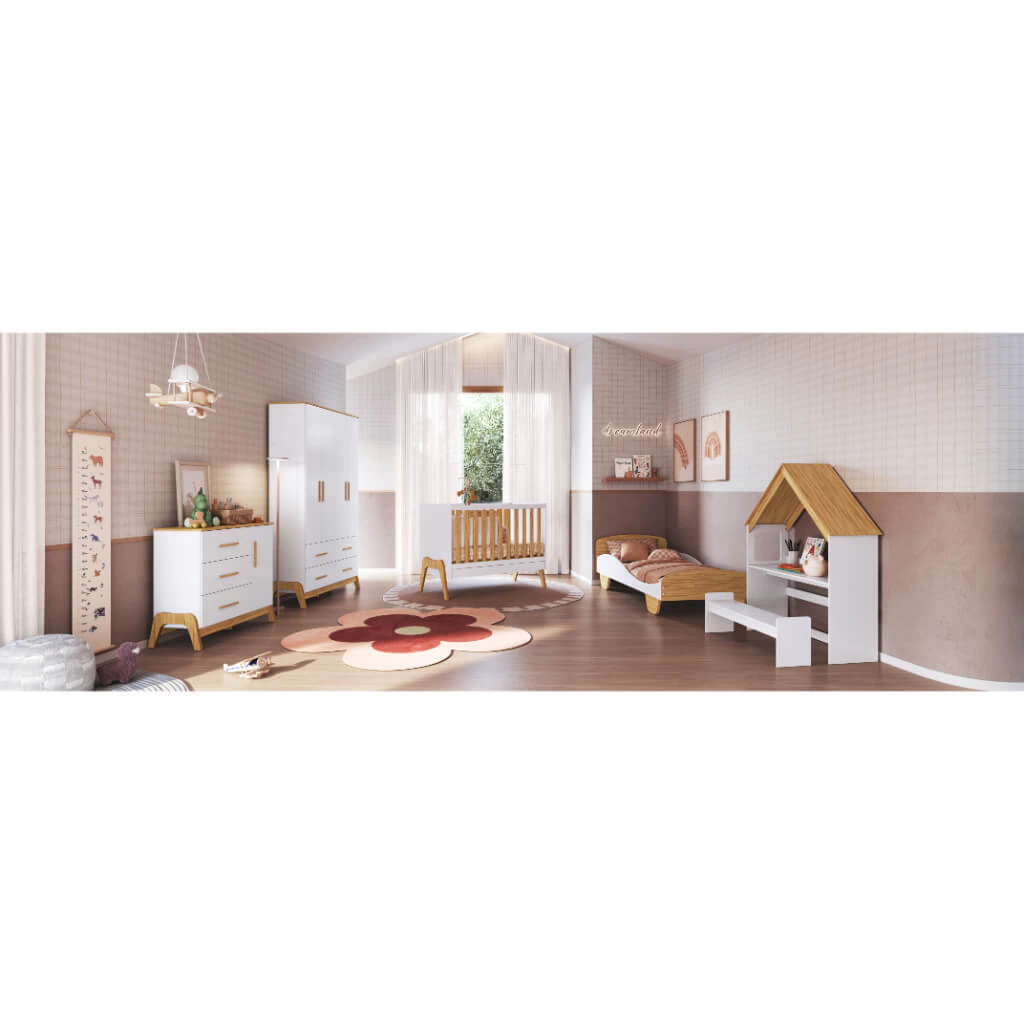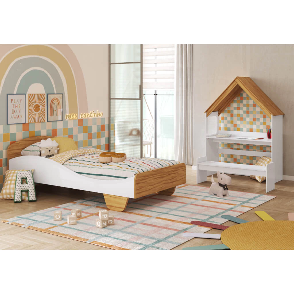 O Kit Casinha é um produto 100% MDF e possui pintura atóxica. Sua estrutura é fabricada em chapa de 12 e 15 mm. Seu designer é divertido e conta também com uma escrivaninha, o Kit Casinha pode ser fixado a parede e em uma cama solteiro da coleção Lua e Sol da Móveis Peroba